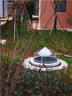 光導(dǎo)照明系統(tǒng)的加入成了小區(qū)景觀的一大亮點,鉆石型采光罩與小區(qū)景觀相結(jié)合相得益彰,通過該系統(tǒng)將自然光導(dǎo)入地下停車場,直接省去白天的電力消耗,實現(xiàn)節(jié)能減排與綠色照明!