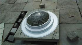 安裝的時候咱們?nèi)滩蛔〗o采光罩來了個特寫,大家都知道香港正能量的采光罩是由特警盾牌的類似PC材料經(jīng)由一系列特殊處理制造而成,在塵土飛揚的施工現(xiàn)場,采光罩依舊光潔可鑒,一絲灰塵都沒有哦!后期更是免人工維護,風(fēng)吹雨淋即可自凈!