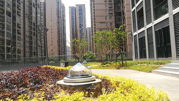 安裝在湖南長沙長房·云西府小區(qū)路面綠化帶里面的鉆石型導(dǎo)光管采光系統(tǒng),一眼看過去就特別的顯眼,遠(yuǎn)眺近看都尤為賞心悅目,無疑就是小區(qū)綠化的一個亮點(diǎn)!