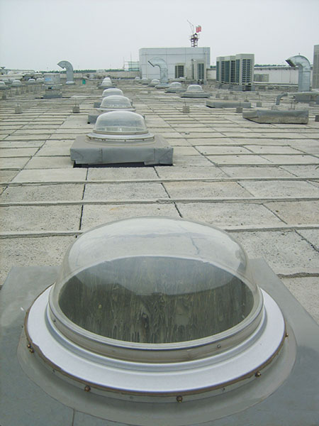 頂層安裝尤為適用于單層或頂層建筑。挺立的采光罩不管風(fēng)吹雨打、日曬雨淋,依舊“賣力”地采光,為建筑內(nèi)部提供源源不斷的太陽光。猶如一個(gè)個(gè)勇士站列頂層,為建筑保駕護(hù)航,帶來光明。