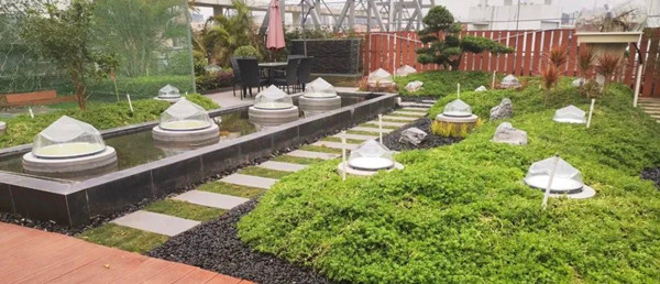 此外,光導(dǎo)照明系統(tǒng)在夜晚開啟補光裝置之后,夜間也會有景觀亮化效果。晚上,夜晚,約上三五知己在這璀璨靈動的鉆石燈光氛圍上談天說地,不失為一種恰意的享受。