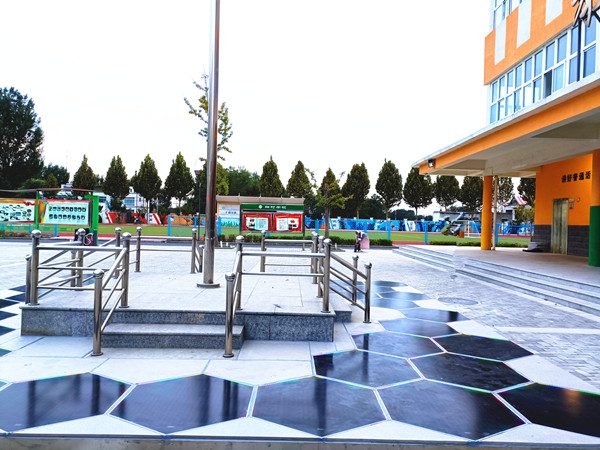 為了讓校園的廣場地面有更多實(shí)用性功能,在不影響行人的基礎(chǔ)上,采用光能寶盒發(fā)電系統(tǒng),白天直接代替地板磚進(jìn)行發(fā)電,所發(fā)的電儲能留到晚上為科技樓與教學(xué)樓間的風(fēng)雨走廊提供照明用電,夜間還能發(fā)出五顏六色的景觀亮化光線,豐富校園景觀氛圍。